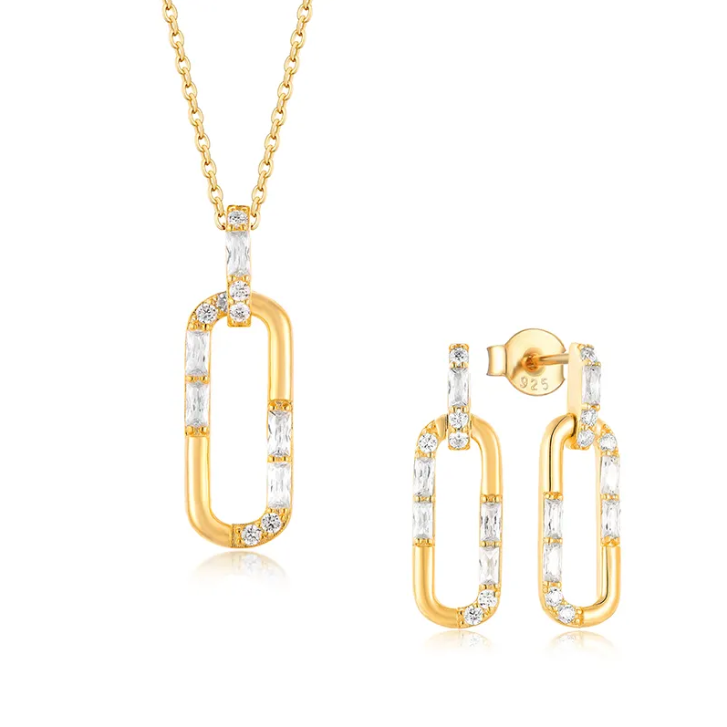 Elegant 925 sterling silver set, gold-plated with 18K gold and embellished with sparkling zircon stones.