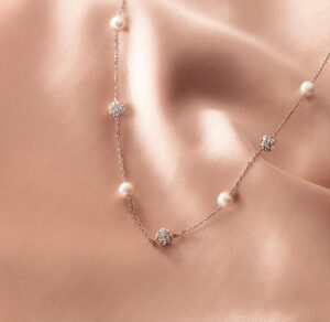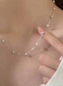 ✨ “Elegant 925 silver necklace adorned with lustrous beads and sparkling crystals – a timeless piece that adds a touch of sophistication to any outfit. 💎✨